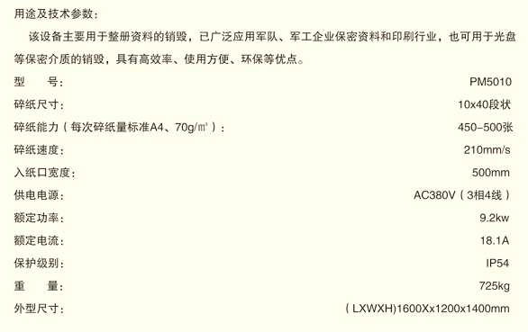 中國國家保密局認證 工業(yè)碎紙機 YD-PM-5010 粉碎500張